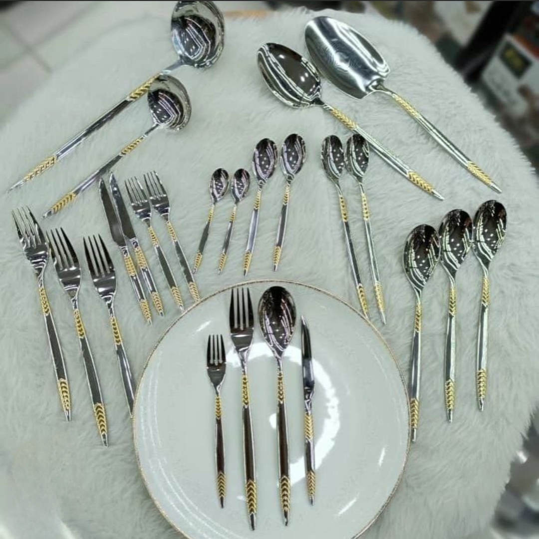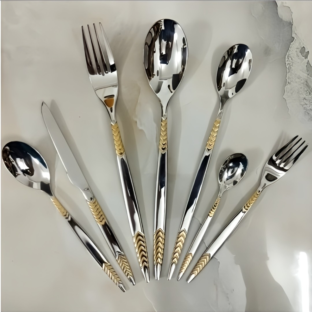 سرویس قاشق چنگال برند یونیک ۱۲۰پارچه نیم طلایی