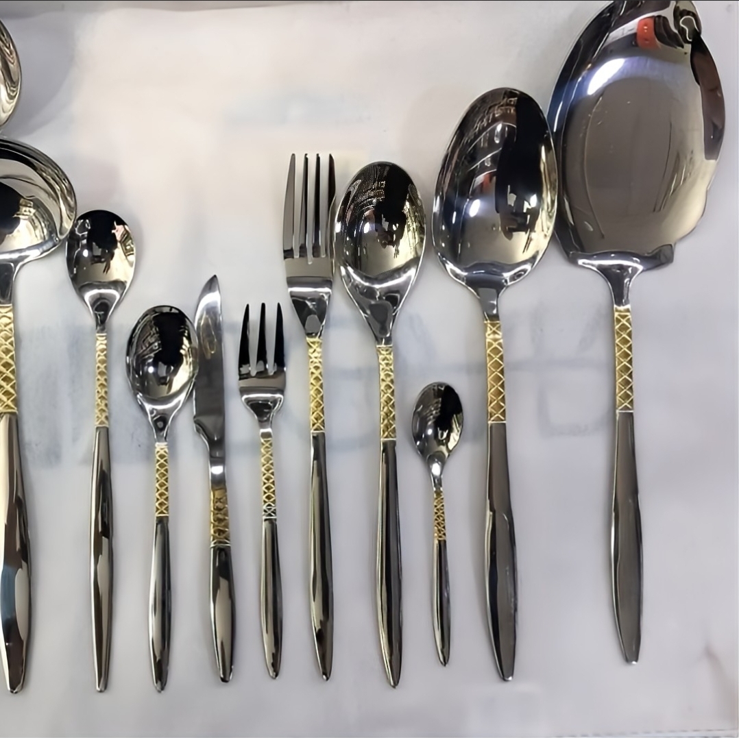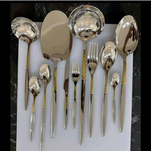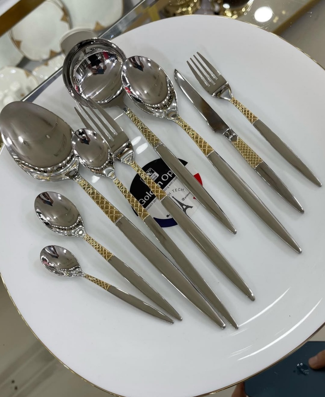 سرویس قاشق چنگال برند یونیک ۱۲۰پارچه نیم طلایی