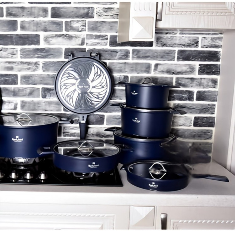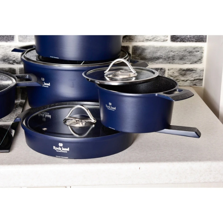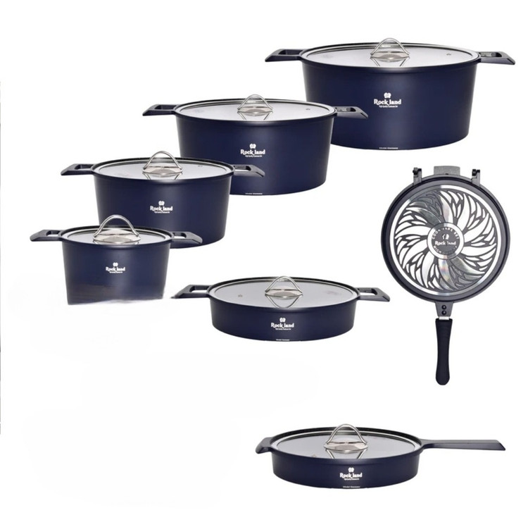 سرویس قابلمه چدن گرانیت راکلند ۱۵پارچه مدل آلمانی سورمه ای