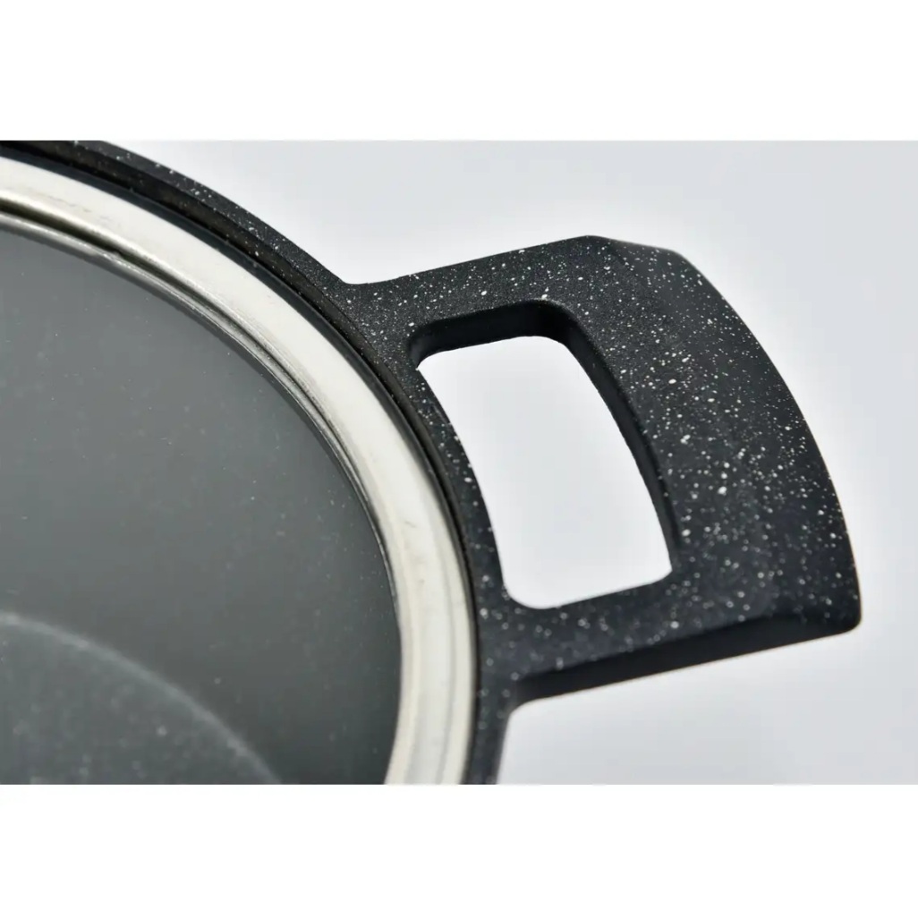 دارای 4 قابلمه به سایزهای 20، 24، 28 و 32 با درب شیشه ای