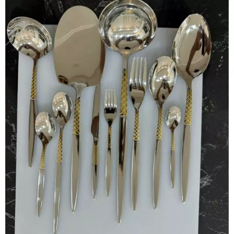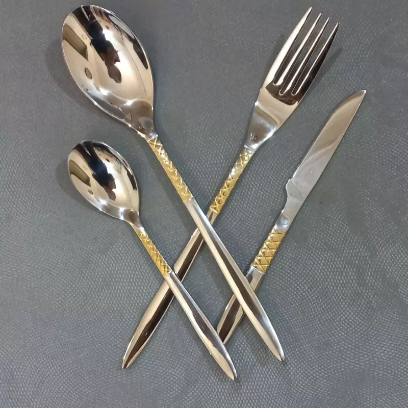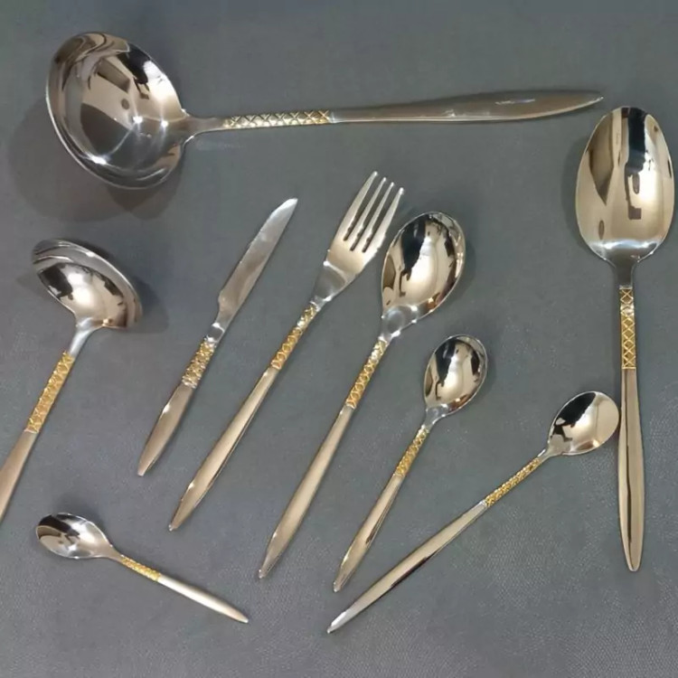 سرویس قاشق و چنگال یونیک 24 نفره 120 پارچه دهانه اروپایی ضربدری استیل نگیر (آهن ربا نگیر)