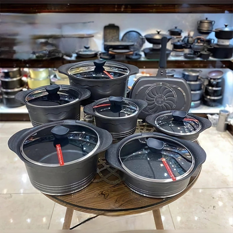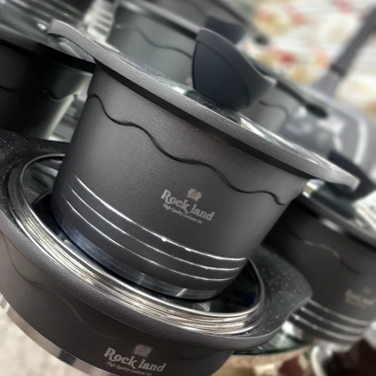 سرویس قابلمه راکلند چدن گرانیتی 14 پارچه (رنگ طوسی)(پس کرایه)