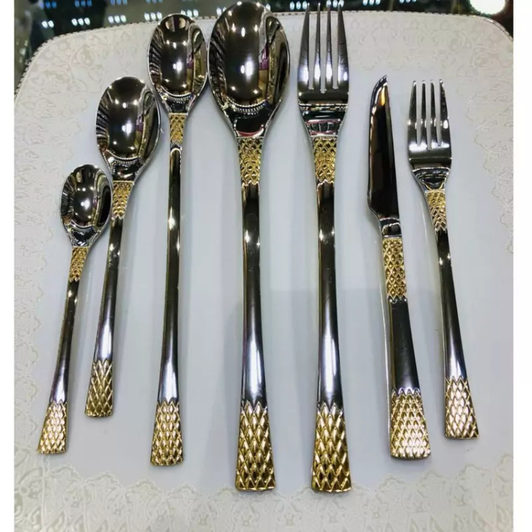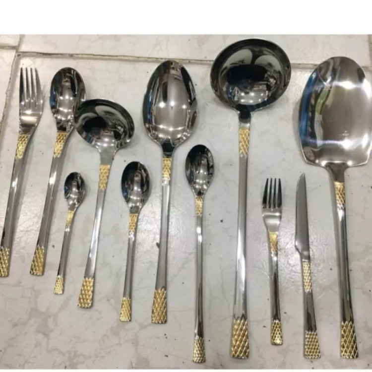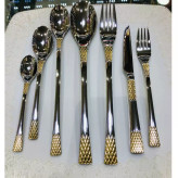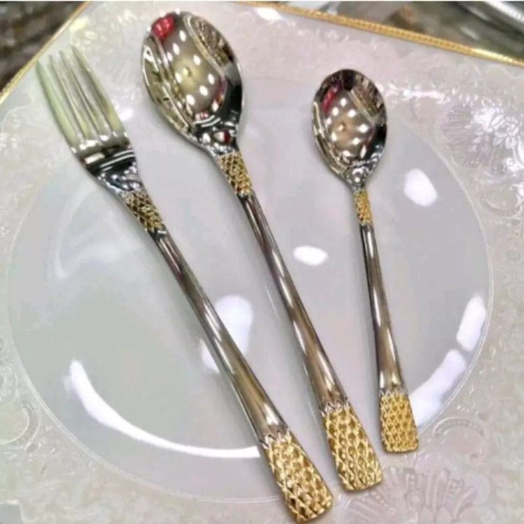 سرویس قاشق وچنگال یونیک 24 نفره 120 پارچه دهانه اروپایی نیم طلااستیل نگیر (آهن ربا نگیر) آناناسی