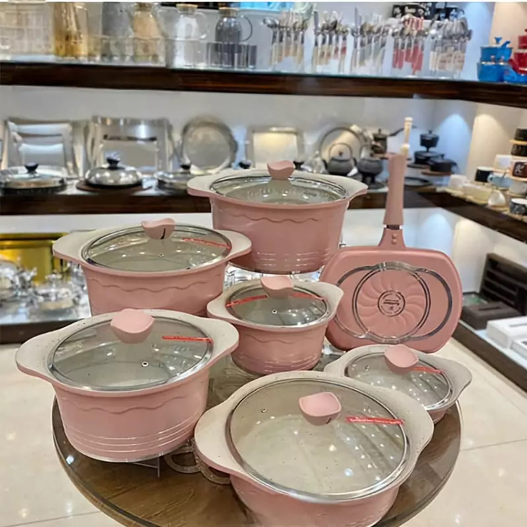 سرویس قابلمه راکلند 14 پارچه چدن گرانیتی(رنگ صورتی)