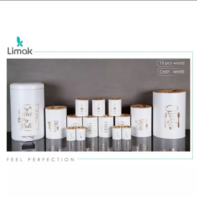 سرویس آشپزخانه 15 پارچه درب چوب برند لیماک طرح چف سفید