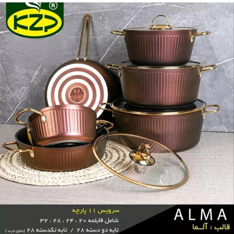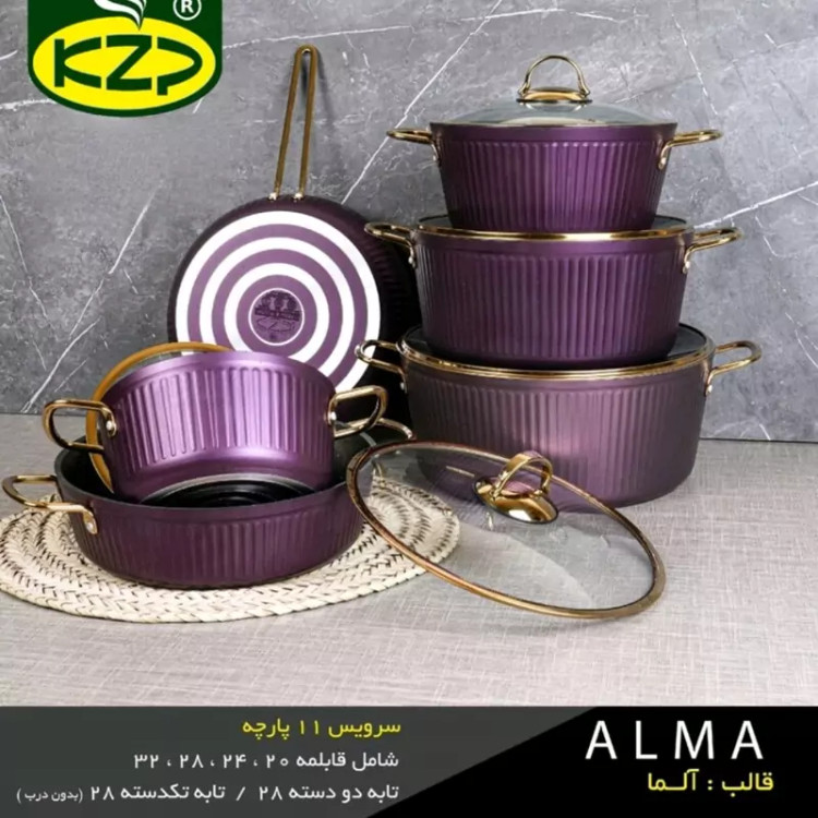سرویس قابلمه 11پارچه kzp(کی زد پی) طرح آلما