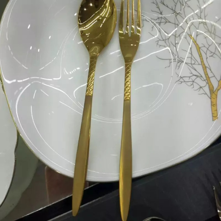 سرویس قاشق یونیک مدل ضربدری طلایی ۲۴نفره ۱۲۰پارچه اهن ربا نگیر ضخامت ۴میل استیل ۱۸/۱۰