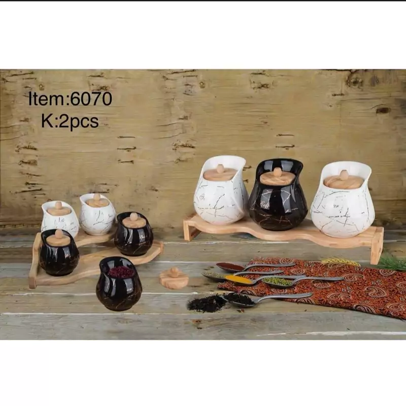 پاسماوری ۸ پارچه درب چوبی طرح ماربل با چوب راش ضدآب. پاسماوری سه عدد همراه استند چوبی جا ادویه ۵ عدد به همراه استند چوبی
