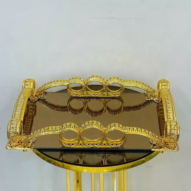 سینی آینه ای طلایی نگین دار رنگ ثابت زیبا