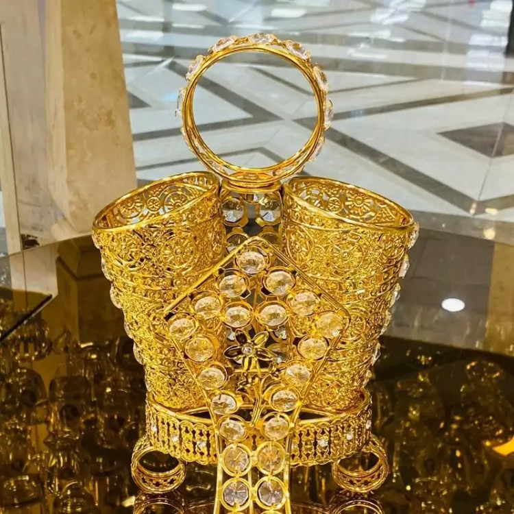 متاسفانه این کالا در حال حاضر موجود نیست. میتوانید از طریق لیست بالای صفحه، از محصولات مشابه این کالا دیدن نمایید.جا کاردی و جاقاشق چنگال طلایی نگین دار با رنگ ثابت بسیاز زیبا و خاص مخصوص خاص پسندا