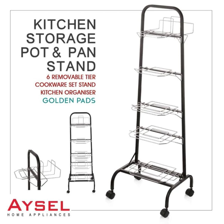 پایه قابلمه فلزی مشکی طلایی و نقره ای آیسل طرح جدید چرخ دار رنگ فورتیک درجه یک