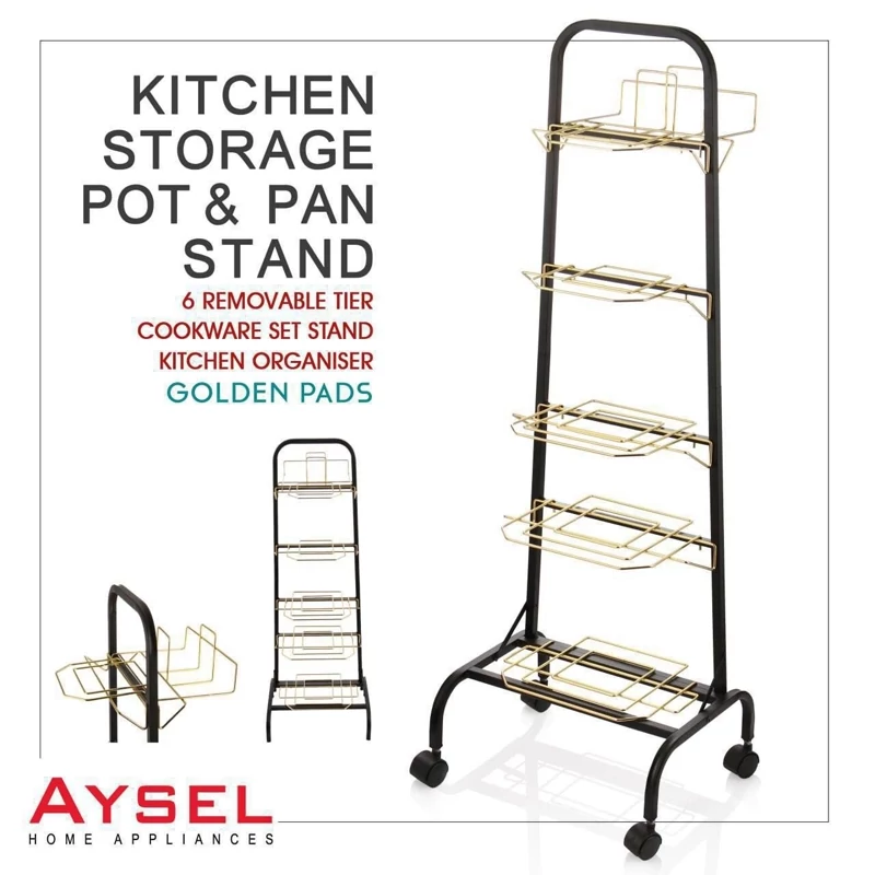 پایه قابلمه فلزی مشکی طلایی و نقره ای آیسل طرح جدید چرخ دار رنگ فورتیک درجه یک